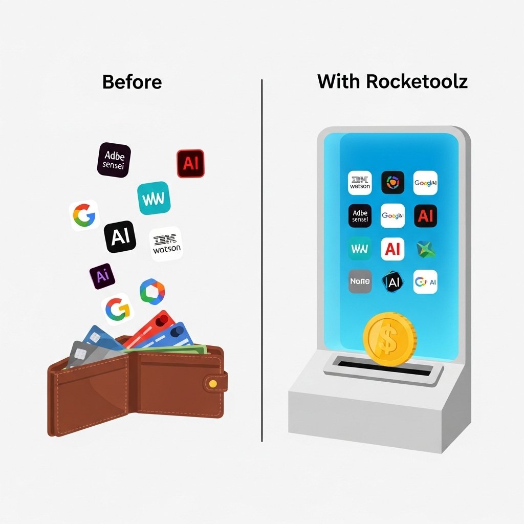 Rocketoolz started from a problem we faced ourselves. As creators and marketers, we wanted to use the best AI tools—like ChatGPT, Perplexity, and Runway ML—to optimize our workflow. But subscribing to all of them individually was financially impossible.